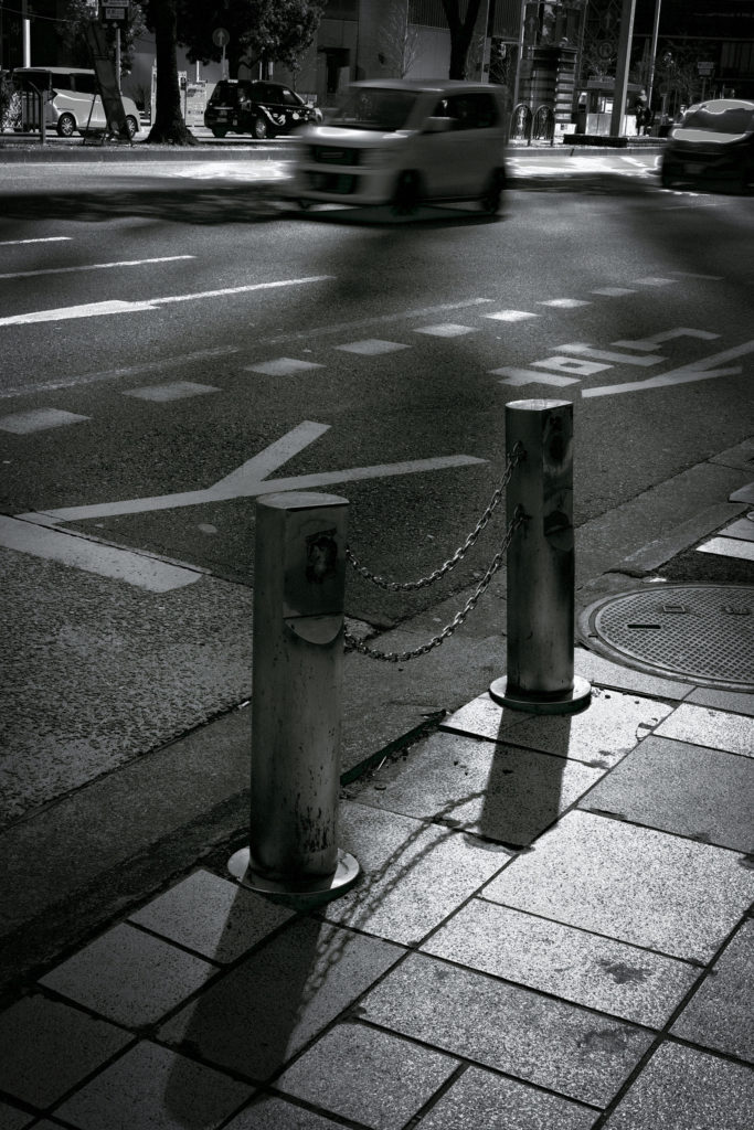 また、植物や街路樹の葉っぱの影が地面に落ちている様子なんかも、モノクロで撮るとシルエットが際立ってすごく絵になりますよ。