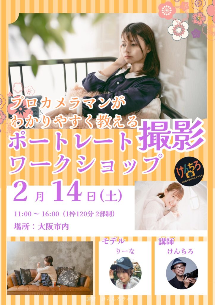 2026年2月14日(土)、大阪にて「ストロボを買ったけれど使い方がわからない」「もっと雰囲気のある写真を撮りたい」という方に向けた、室内ライティングポートレート写真教室(初級編)を開催します。